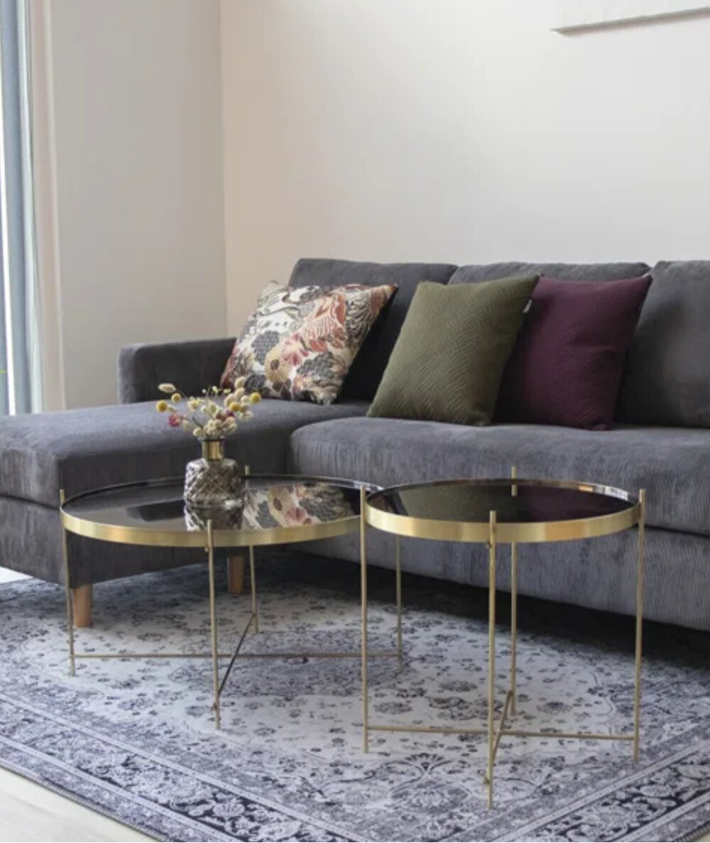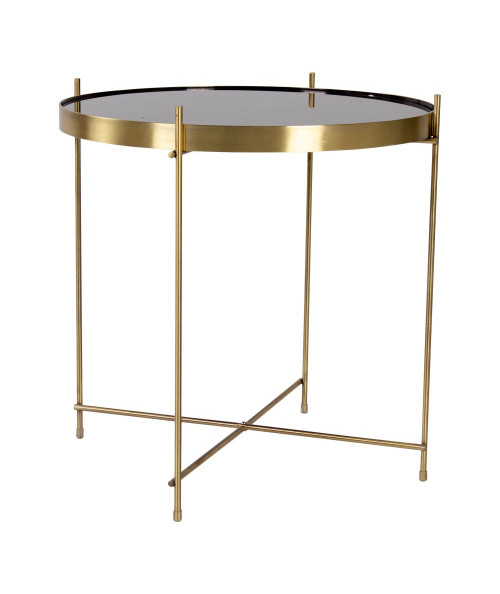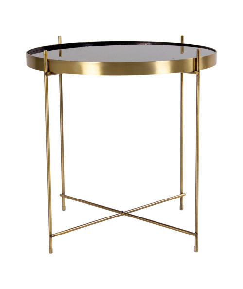 Venezia Sofabord - Hjørnebord i messing farvet stål med glas ø48xh48cm