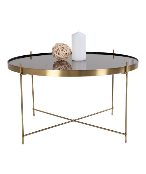 Venezia Sofabord - Hjørnebord i messing farvet stål med glas ø70xh40cm