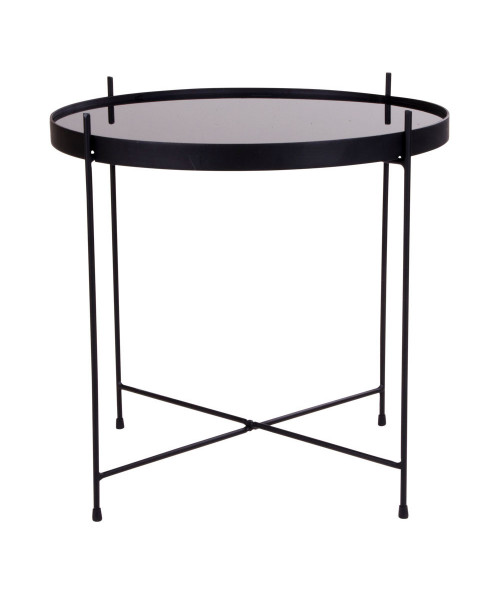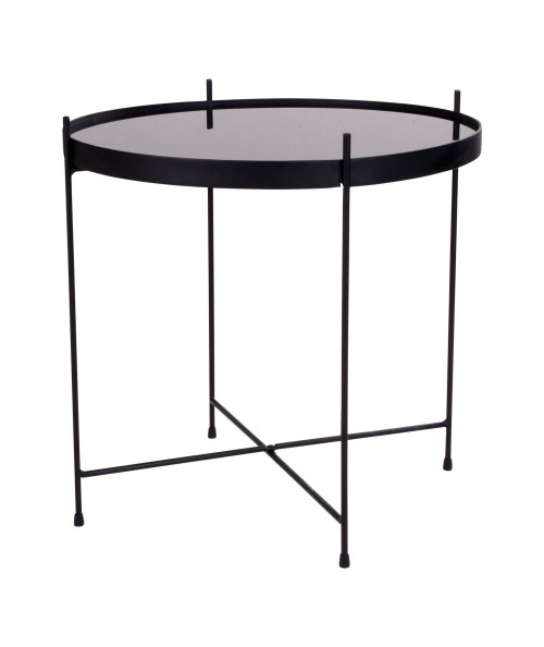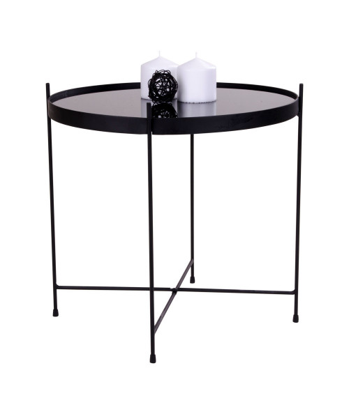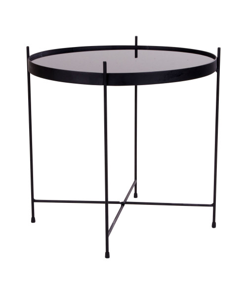 Venezia Sofabord - Hjørnebord i sort stål med glas ø48xh48cm