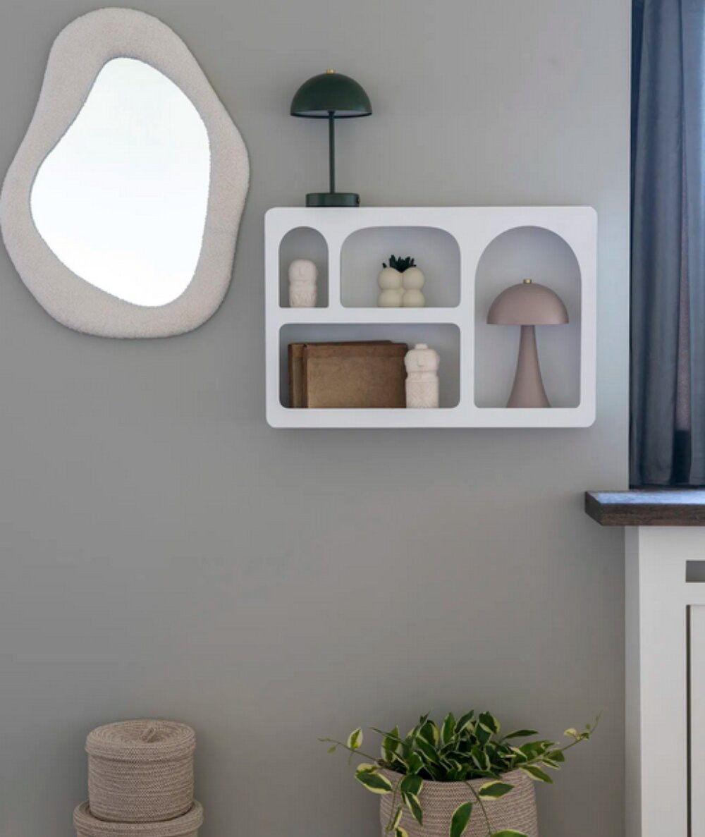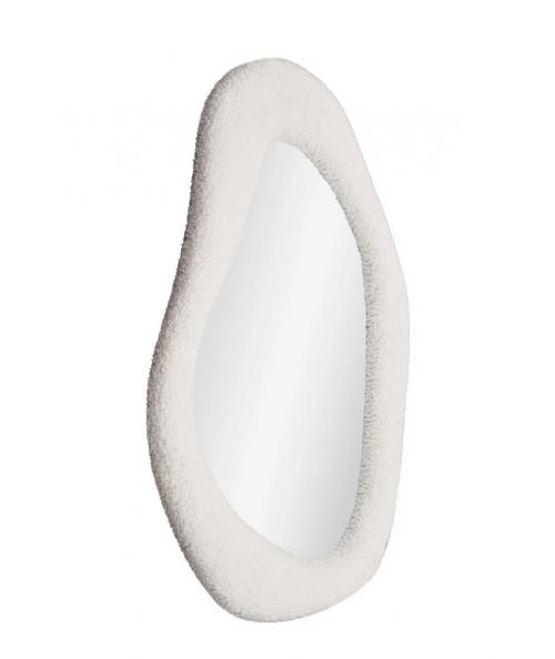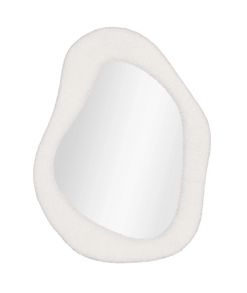 Skab et unikt og moderne udtryk i dit hjem med det smukke Bosa spejl. Dette dekorative spejl kombinerer funktionalitet og æstetik med sit organiske design og bløde, teddy-beklædte ramme. Det asymmetriske, bølgende design i kombination med den hvidfarvede ramme tilfører en hyggelig og trendy stil, der passer perfekt til både moderne og skandinaviske indretninger. Med målene 46,5 x 61 cm er spejlet ideelt som en markant vægdekoration eller som et supplement til mindre områder.