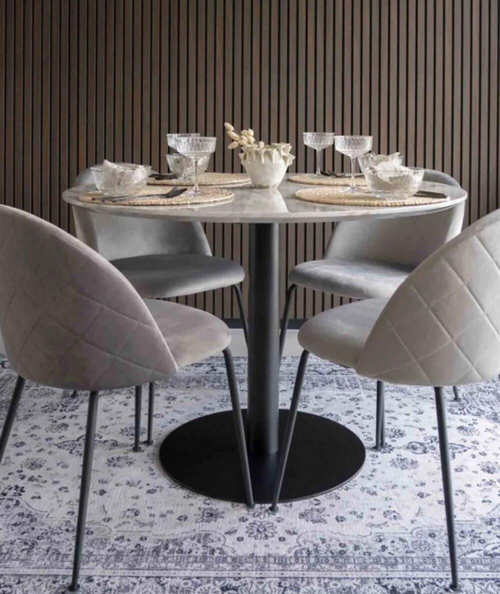 Flot Bolzano spisebord fra House Nordic. Spisebordet har en flot rund bordplade med marmor look og ben i sort stål, hvilket giver det et let og luksuriøst udtryk. Spisebordet kan matches med mange forskellige stole se bl.a. de smukke Geneve spisebordsstole eller de smarte Drammen spisebordsstole. Med Bolzano spisebordet får du et bord, som er stilrent, og kan passe ind i det fleste hjem. Det er kun fantasien der sætter grænser. I Bolzano serien findes også sofabord og barbord.