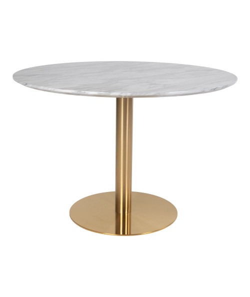 Bolzano Spisebord - Spisebord med top i marmor look og messing ben ø110x75cm