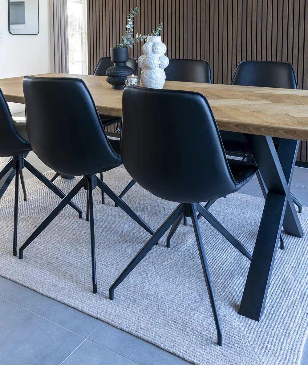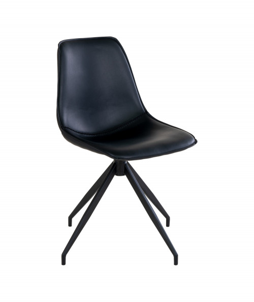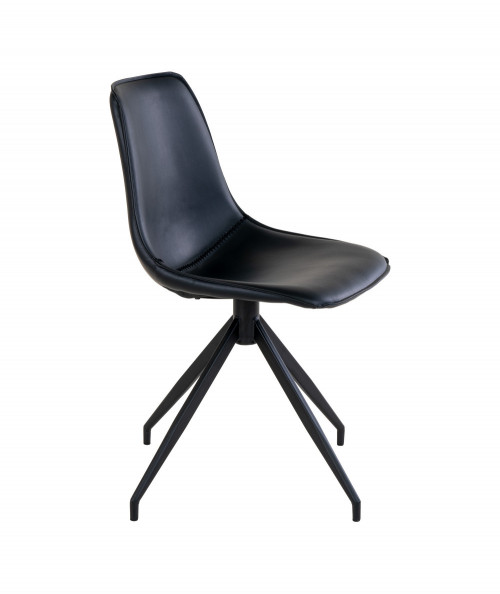 The Adele dining chair has a simple and beautiful design. The dining chair has a swivel base and is made of black PU. It is a beautiful chair that fits beautifully into all interiors. The chair has a light expression despite the black color, which gives it an elegant look.