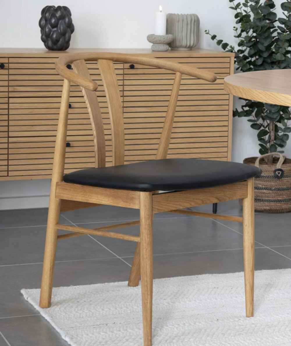 Vores Artenara Spisebordsstol er det ideelle møbel til din spisestue. Denne elegante spisebordsstol er lavet af egetræ og har et sæde betrukket med PU læder i en kombination af natur og sort. Med målene B54 x H77 x L60 cm tilbyder denne stol både æstetik og funktionalitet. Du kan placere Artenara spisebordsstolen ved ethvert spisebord i din spisestue eller køkkenet. Stolen er designet til at blive brugt omkring et bord, så du kan sidde komfortabelt under måltiderne.