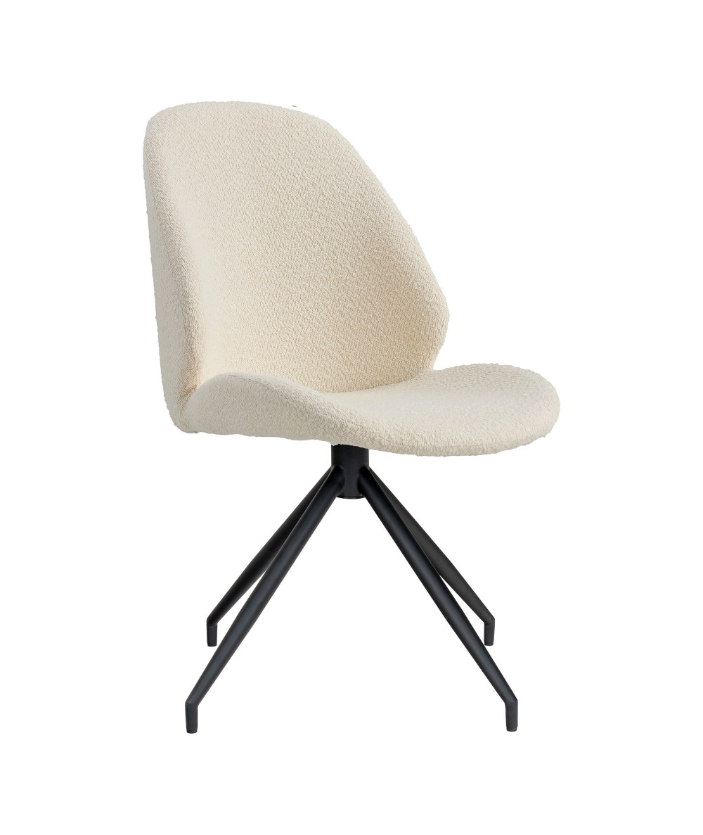Monte carlo spisebordsstol i hvid bouclé med drejefod og sorte ben