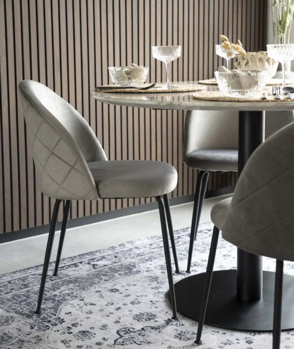 Geneve Spisebordsstol - Stol i grå velour med sorte ben