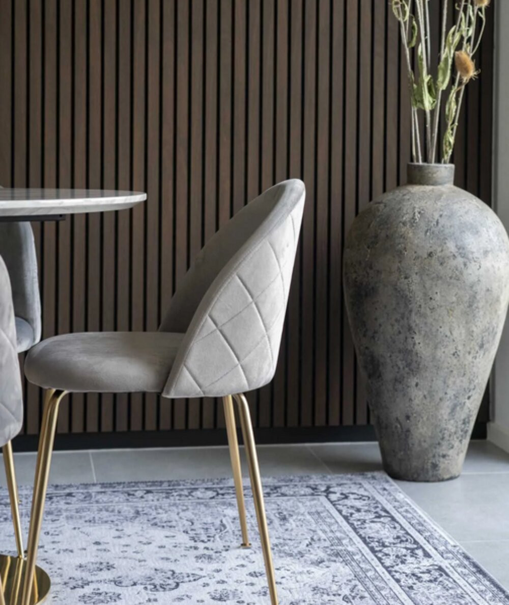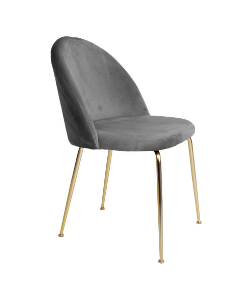 Geneve Spisebordsstol - Stol i gråt velour med ben i messing look