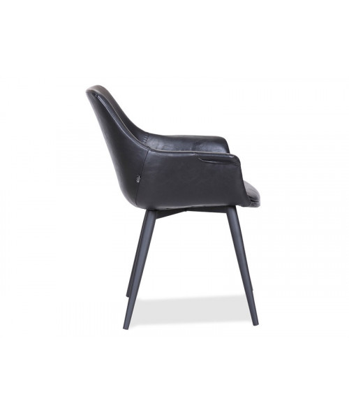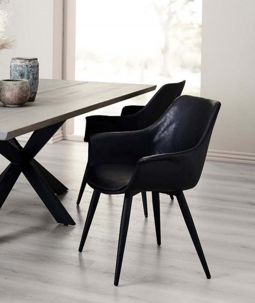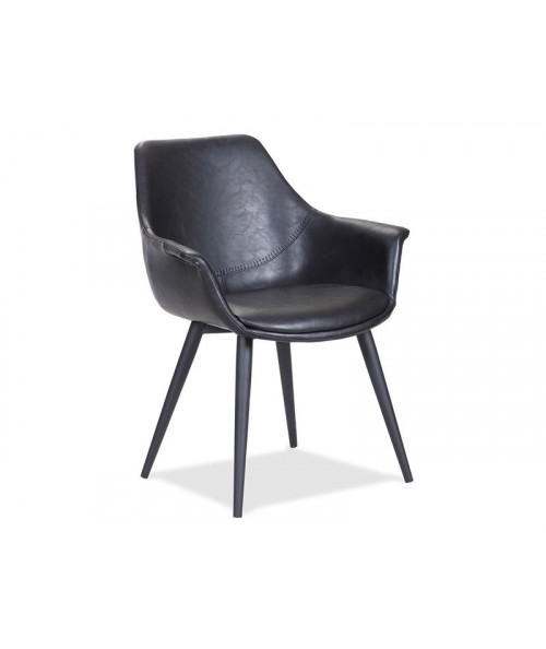 En yderst lækker stol fra House of Sander. Stolen fås i flere forskellige farver, og har et virkelig flot og rustikt design, som passer flot ind i den nordiske indretningsstilen. Det er en meget komfortable spisebordsstol, da du sidder fremragende i den. Den er betrukket med slidstærkt PU. Spisebordsstolen har et moderne og industrielt look, som giver et flot udtryk til dit bord og ikke mindst indretning. Armlænets højde på stolen (fra gulv til hvor armlænet er højest er 65 cm.