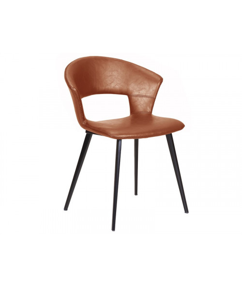 En super lækker Tora spisebordsstol fra House of Sander. Stolen fås i sort og denne smukke cognac farve. Stolen har rund ryg hvilket gør at man sidde enormt godt i stolen. Sædet er i pu og benene er sorte i metal ben. Stolen oser af eksklusivitet og passer ind i den nordiske indretningsstil.