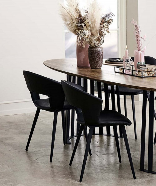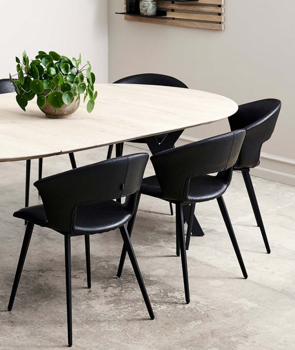 En super lækker Tora spisebordsstol fra House of Sander. Stolen er sort og har rund ryg hvilket gør at man sidde enormt godt i stolen. Sædet er i pu og benene er sorte i metal ben. Stolen oser af eksklusivitet og passer ind i den nordiske indretningsstil.