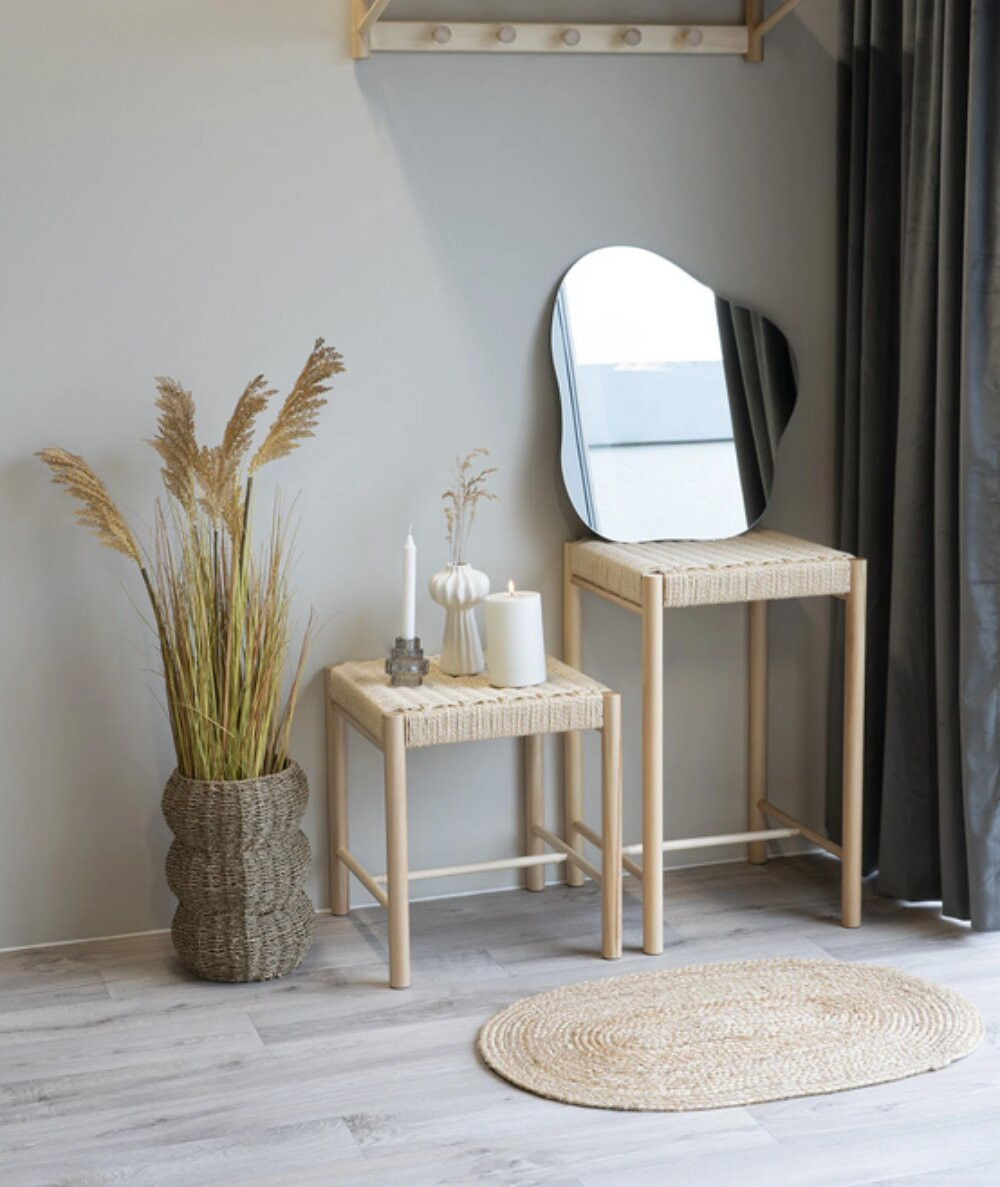 Prøv lige engang at se denne fine Bibi taburet. Er den ikke fin? Taburetten er lavet i poppel med naturflet sæde. Stil evt. taburetten i din lille entre så du kan sætte dig ned og snørre dine sko. Hæng en knagerække og spejl ovenover og hyg op med en kurv ved siden af.
