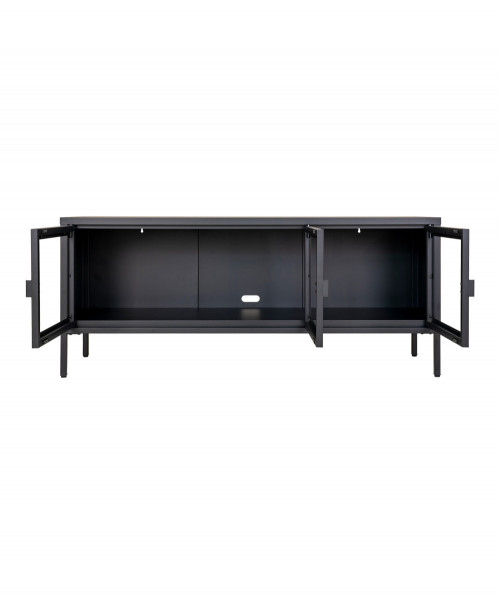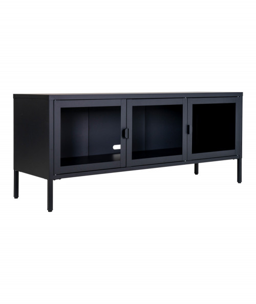 Det flotte Brisbane TV møbel har 3 glaslåger foran men også på siderne og har et stilrent og moderne design. Tv bænken passer til vores fine Brisbane skænk, som også er lavet i sort mat metal. På bagsiden har Tv bænken et hul til dine ledninger. Hyg op med evt. en smuk bordlampe, vaser, skjuler, lysestager mm ovenpå tv-bænken eller på hylderne. TV bænken har et industrielt design, men kan sagtens passe ind i alle stilarter. Tv bænken har stillesko på benene, så det står stabilt.
