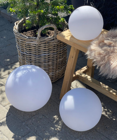Med vores elegante og runde solcelle lamper skaber du en smuk og hyggelig stemning. Lamperne som ligner månen, udsender et betagende lys om aftenen, når mørket har lagt sig. Med tre forskellige størrelser at vælge imellem kan du placere dem sammen for en dramatisk effekt eller sprede dem rundt omkring i haven for at skabe små lysende oaser. Lamperne er perfekte at stille på bænken, jorden eller terrassebordet – mulighederne er uendelige! Der medfølger spyd, så de kan sættes fast ned i jorden, så de ikke blæser væk. Solcelle lamperne lader op i dagtimerne, når der er sol. Ønsker du ikke, at de skal tænde automatisk, kan du slukke dem i bunden af lampen.