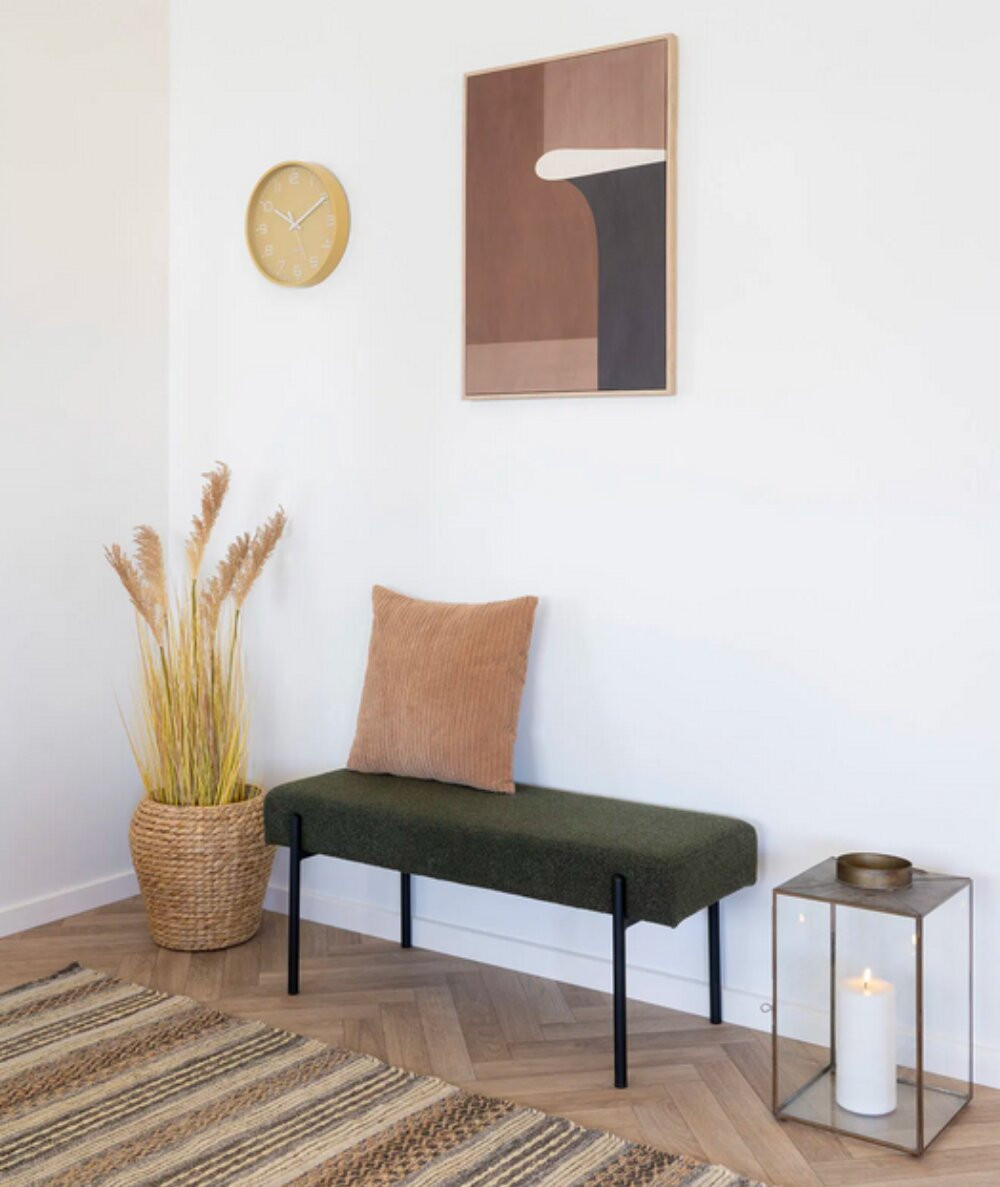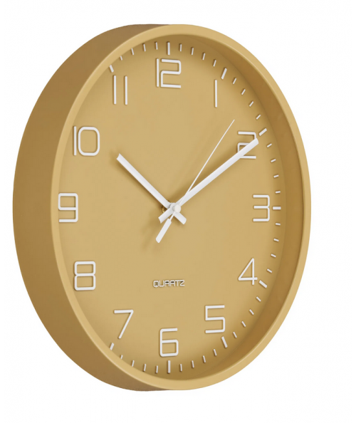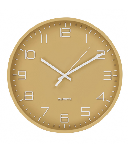 Det minimalistiske design med tydelige hvide tal og visere på den okkerfarvede baggrund skaber en flot kontrast, der gør tiden nem at aflæse, samtidig med at uret fungerer som et stilfuldt dekorativt element. Rosolini væguret kan let integreres i forskellige indretningsstile og tilføjer et subtilt farvepust, der passer perfekt i alt fra moderne til skandinaviske hjem.