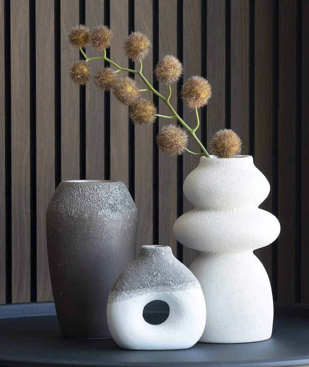 Den elegante Keramik vase har et flot design og har et kunstnerisk udtryk med runde former. Stil den smukke vase i en klynge sammen med andre keramik vaser og lade den sprede flot stemning til dit hjem.