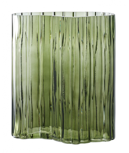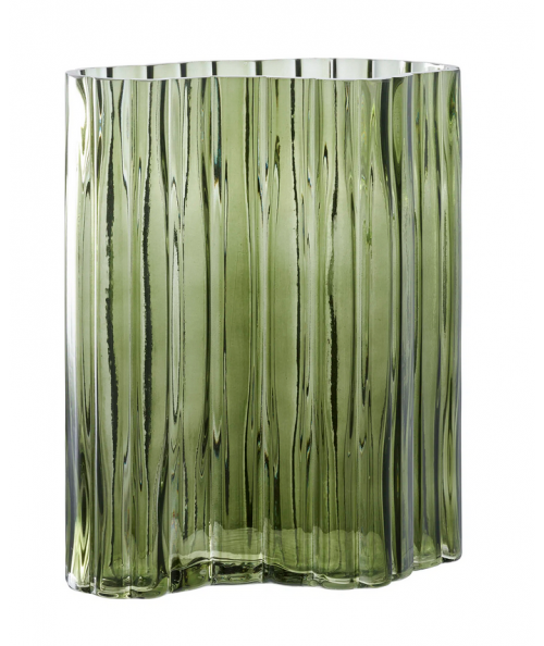 Skab elegant stemning i hjemmet med denne smukke grønne glasvase. Med målene 21x12x26,5 cm er denne vase både et dekorativt element og en funktionel beholder til dine yndlingsblomster. Vasen har et unikt design med en bølgende overflade, der fanger lyset smukt og skaber et fascinerende spil af skygger og refleksioner.