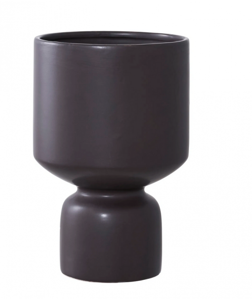Giv din indretning et elegant og moderne udtryk med denne sorte keramiske urtepotte. Med sin unikke silhuet og slanke form er urtepotten en perfekt tilføjelse til ethvert rum i dit hjem. Den måler 15 cm i bredde og 23,5 cm i højde, hvilket gør den ideel til både små planter og dekorative opsætninger.