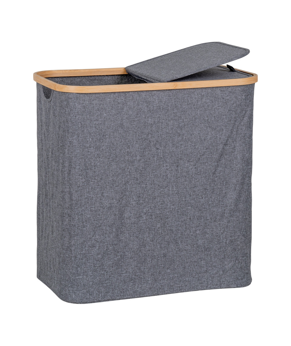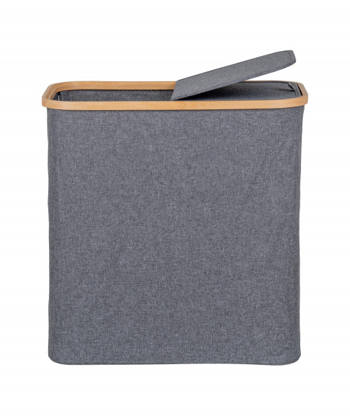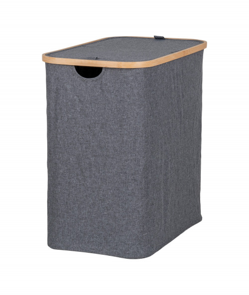 Caroline vasketøjskurv med bambus kant og mørkegrå stof