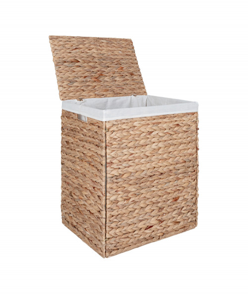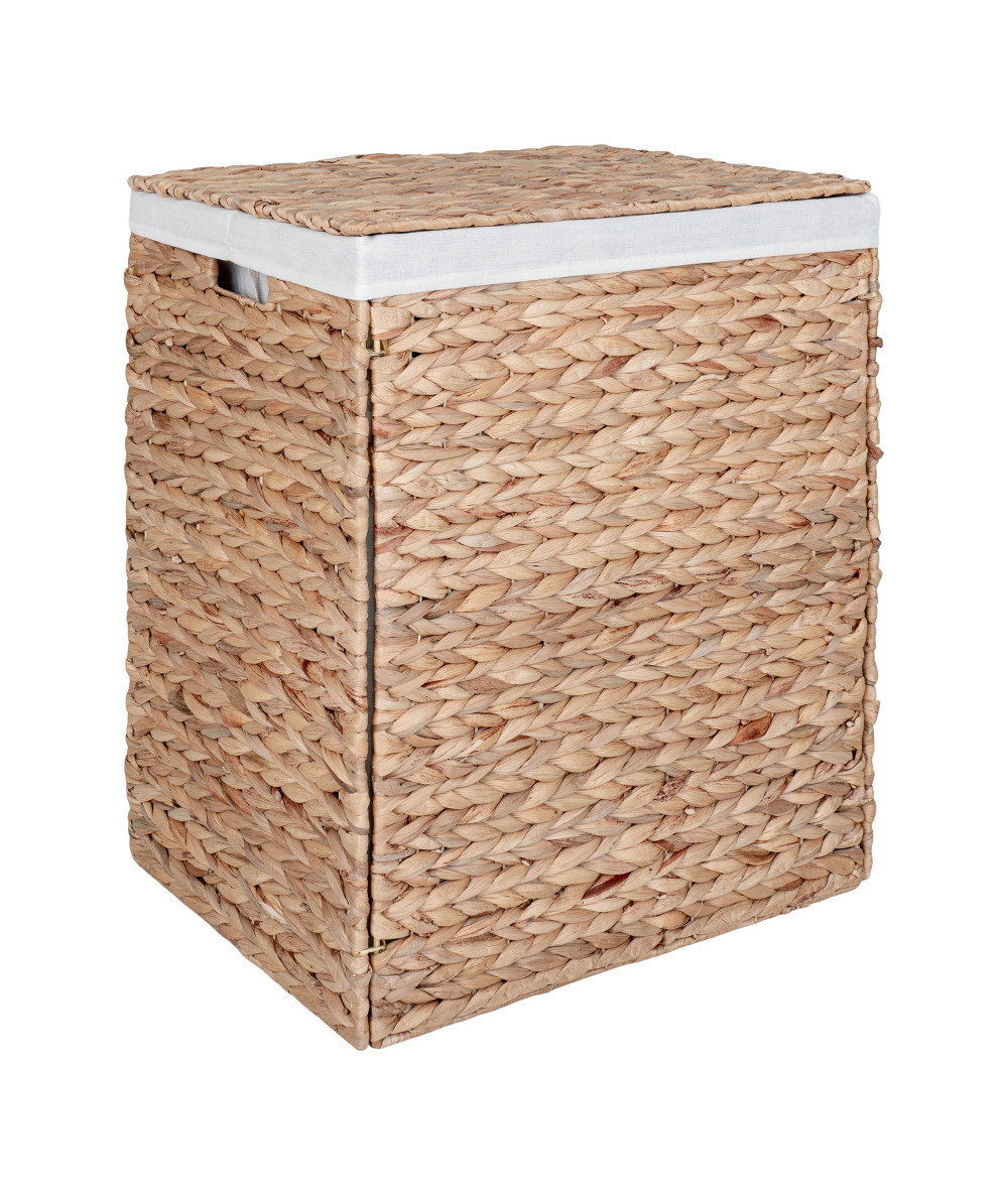 Foldbar vasketøjskurv med låg i vandhyacinth inkl. inderpose