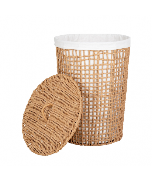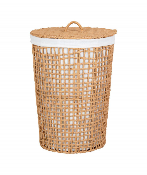 Denne fine vasketøjskurv er lavet af papirflet i en smuk lysebrun farve, der skaber en naturlig og indbydende atmosfære i dit hjem. Med en diameter på 42 cm og en højde på 56 cm har den rigelig kapacitet til at opbevare dit vasketøj.