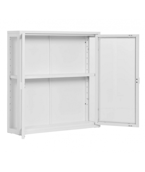Vitrineskabets rene linjer og hvid finish gør det nemt at integrere i både moderne og klassisk indretning. Det er designet til at hænge på væggen, hvilket frigør gulvplads og giver en let og luftig følelse i rummet. Perfekt til køkkenet, stuen eller spisestuen, hvor det både kan være praktisk og dekorativt.