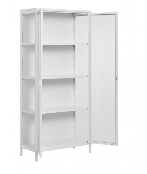 Brisbane Vitrineskab er et elegant og rummeligt møbel, designet til at kombinere funktionalitet og stil i dit hjem. Med målene 80x35x175 cm giver dette vitrineskab rigelig plads til at opbevare og fremvise dine mest elskede genstande. Skabet er fremstillet af robust stål med en smuk hvid finish, der tilføjer et rent og moderne udtryk til rummet.