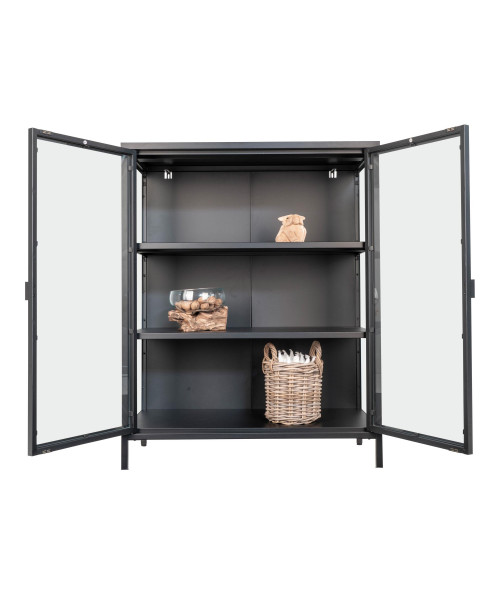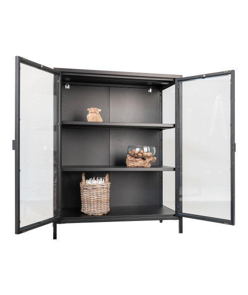 Brisbane Vitrineskab - Vitrineskab i sort med glaslåger 40x80x101,5 cm