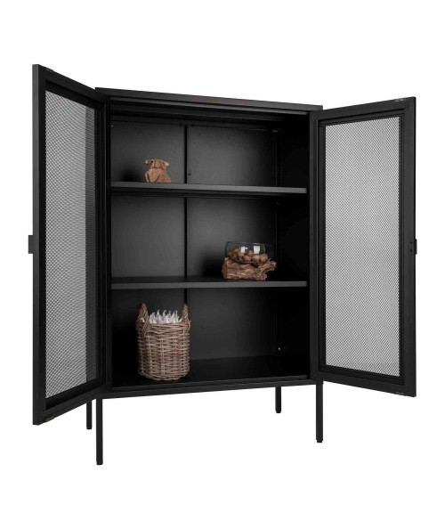 Melbourne Vitrineskab - Vitrineskab i sort med trådnetslåger